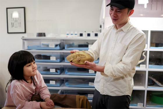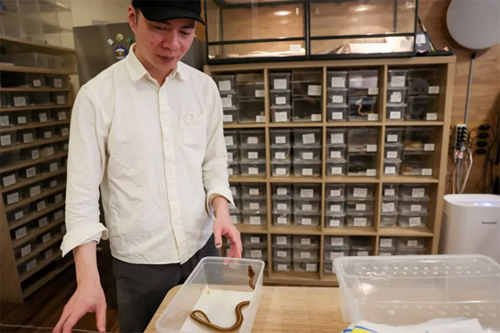 واصطحب ليو تينغ تشيه ابنته إلى المتجر، حيث نظرت بفضول إلى الحيوانات داخل الأقفاص. وقال ليو "من خلال هذه الممارسة، يمكنها أن تتعلم كيفية الاعتناء بالحيوانات الصغيرة والرفق بها". وتايوان ذات الطبيعة الجبلية والمناخ شبه الاستوائي هي الموطن الأصلي لنحو 60 نوعا من الثعابين.