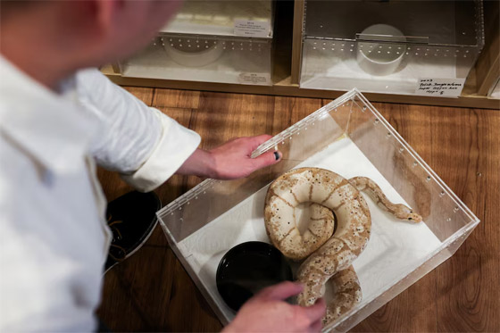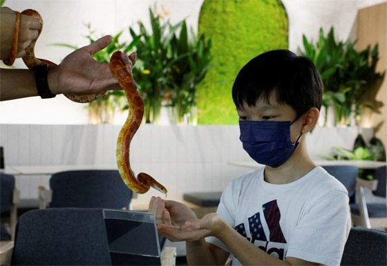 ويقدم لو تشيه يو البالغ من العمر 42 عاما، وهو صاحب متجر بايثونيزم للحيوانات الأليفة في تايبه الذي افتتحه في 2017، لمن يحتمل أن يمتلكوا ثعابين فرصة للتفاعل مع الثعابين أثناء تناول فنجان من القهوة. وقال: "أوفر للناس الفرصة لتجربة التعرف على الثعابين ومعرفة ما إذا كانوا سيحبونها دون أي تحيزات".