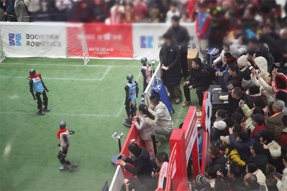 - زوار يشاهدون الروبوتات خلال لعبها كرة القدم في معرض للعلوم والتكنولوجيا في بكين في الصين.