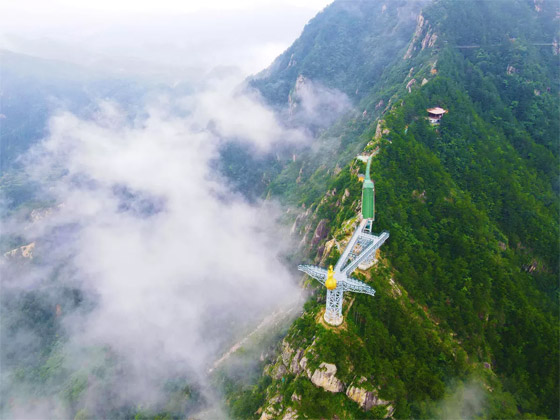 - منصة ذات قاع زجاجي لمشاهدة الأجسام الطائرة في منطقة بينغو، ذات المناظر الطبيعية الخلابة في بكين، الصين.