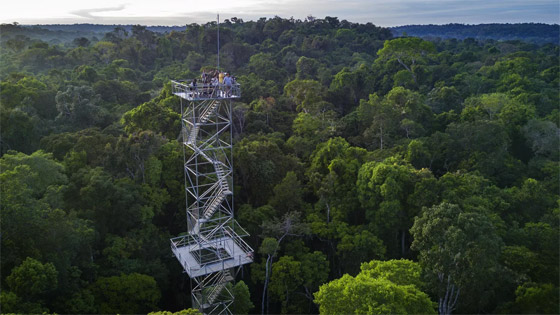 - برج المراقبة عند شروق الشمس في غابات الأمازون المطيرة، البرازيل.