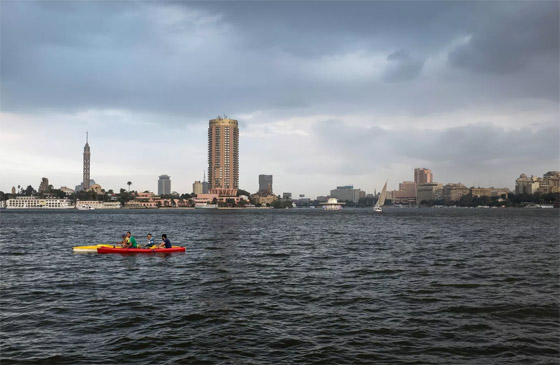 2. مجدفون يبحرون في نهر النيل بالقاهرة.