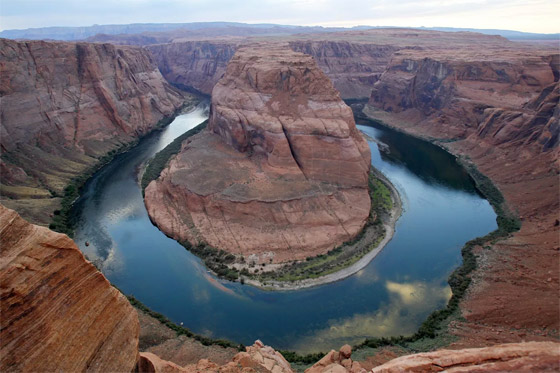 3. صورة لنهر كولورادو عند منعطف هورسشو الشهير، في منطقة غلين كانيون الوطنية الترفيهية في أريزونا.