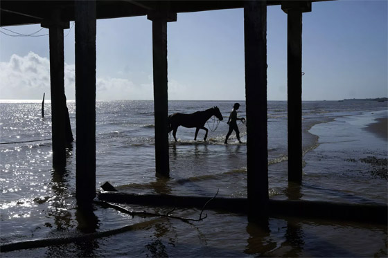 4. رجل يمتطي حصانه على ضفاف نهر الأمازون خلال مهرجان الأمازون لركوب الأمواج الذي أقيم في قناة دو بيريجوسو، أو "القناة الخطرة"، في أرخبيل جزيرة ماراجو، البرازيل.