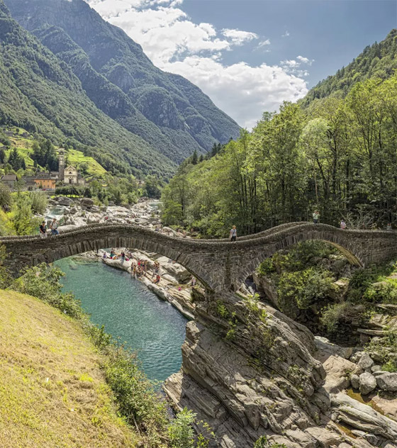 5. جسر حجري في لافيرتيزو فوق نهر فيرزاسكا في تيسينو.