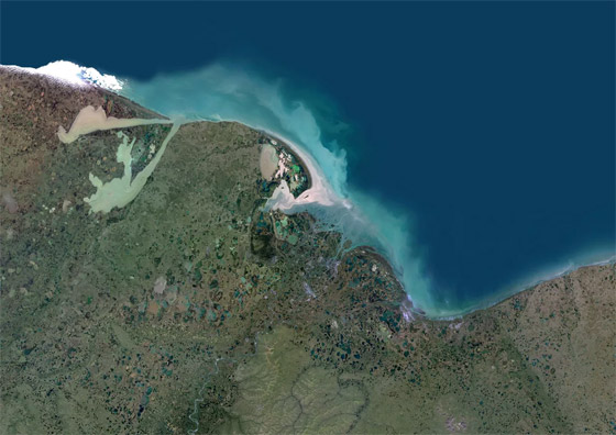 10. صورة أقمار صناعية لدلتا نهر إنديغيركا في روسيا.