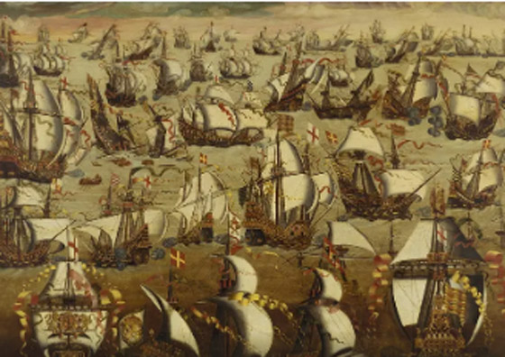 ما بين عامي 1585 و1604، عاشت القارة الأوروبية على وقع أحداث الحرب الإنجليزية الإسبانية. وبهذه الحرب التي استمرت لنحو 19 سنة وأسفرت عن سقوط عشرات آلاف القتلى واجهت القوات الإنجليزية نظيرتها الإسبانية بمناطق عديدة وتجاوزت القارة الأوروبية لتبلغ الكاريبي. من جهة ثانية، تلقت إنجلترا دعما عسكريا هاما من حليفتها جمهورية هولندا، بينما حصل الإسبان على دعم من البرتغاليين تزامنا مع دعمهم لما عرف حينها بهولندا الإسبانية. وخلال الحرب الإنجليزية الإسبانية، فقدت إسبانيا هيبتها بسبب حادثة الأرمادا (Armada) التي لا تقهر. فبعد وصفها بأقوى سلاح بحرية بالعالم، تلقت البحرية الإسبانية سنة 1588 صفعة قاسية عقب خسارتها لما يزيد عن 50 سفينة أثناء مواجهة جمعتها بسفن البحرية الإنجليزية وحليفتها الهولندية، التابعة لجمهورية هولندا، بالقرب من القناة الإنجليزية.