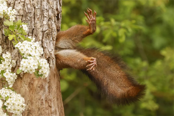 - صورة لسنجاب عالق، في حديقة "بودير بانتاليوني" في بانياكافالو، إيطاليا. (الصورة فائزة بفئة الثدييات للمصور ميلكو ماركيتي، إيطالي).