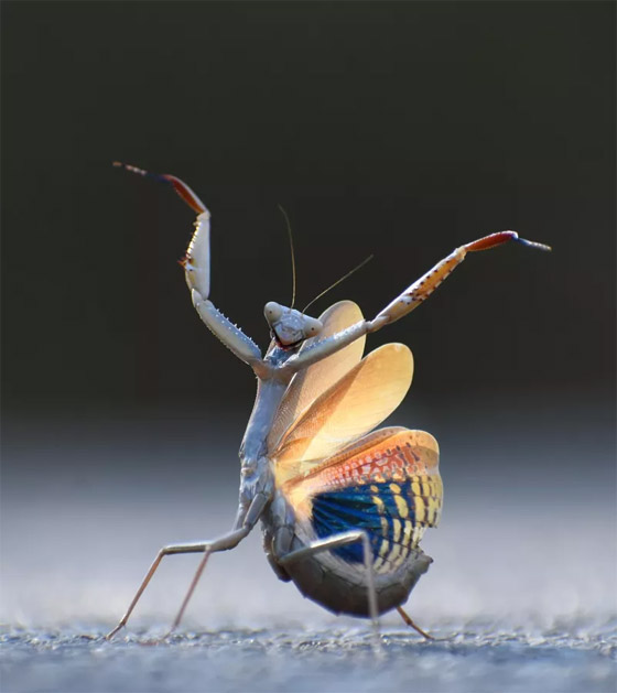 - صرصور فلامنكا الإسباني، في مستنقع بالقرب من مدينة بانتانو إل سيتغار. (الصورة الفائزة بفئة الحشرات للمصور خوسيه ميغيل غالييغو مولينا).
