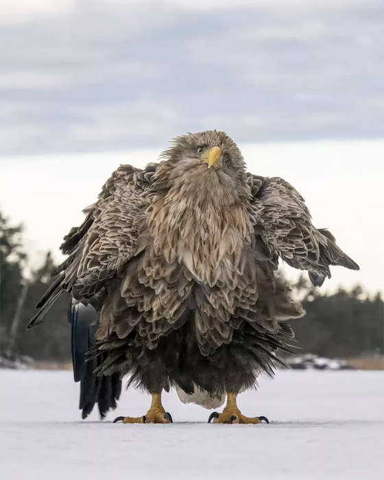 - الصورة الفائزة بفئة "اختيار الجمهور" لنسر أبيض الذيل ينفخ ريشه.