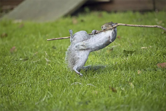 - صورة لسنجاب يلعب بالعصا في فئة "الرقص على الموسيقى"، للمصور فلين ثايتانوندي لوب، بريطانيا.