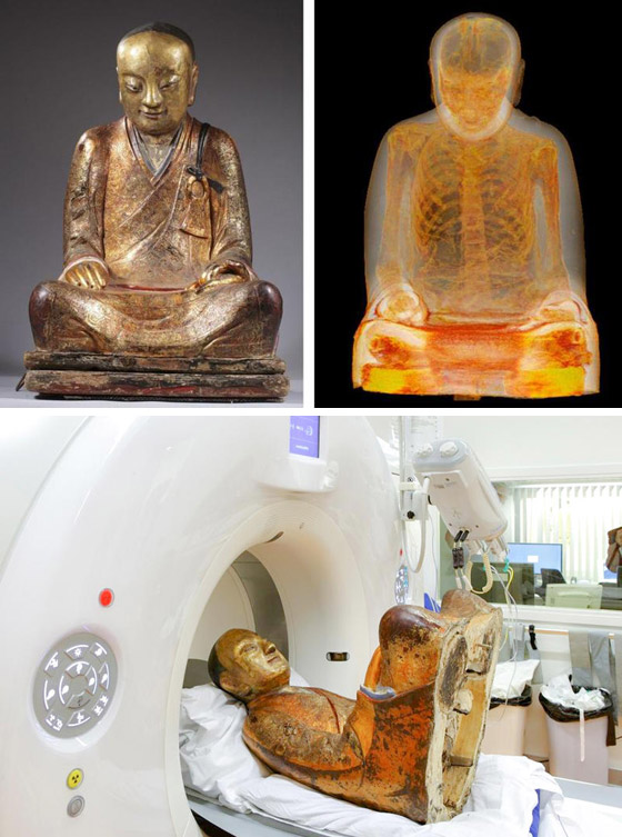 كل ما ذكر سابقاً يمكن وضعه في كفة، وما سنذكره تالياً في كفة أخرى تماماً، لأنه بكل تأكيد الأكثر غرابة بين كل ما سبق دون منازع، وذلك حين اكتشف الخبراء خلال العام 2015، جثة راهب بوذي حقيقية داخل تمثال صيني لـ "بوذا" في هولندا، عمره يعود إلى العام 1100 بعد الميلاد. حيث كانت جثة الراهب محنطة بالداخل، وتأخذ نفس وضعية وشكل التمثال التاريخي. وبعد هذا الاكتشاف الكبير والفريد من نوعه، تم نقل جثة الراهب والتمثال الذي كان يُعرض في أحد المتاحف الهولندية إلى مركز طبي متخصص في مدينة "أمرسفورت" لدراسته تحت إشراف خبير الفن البوذي "إريك برويان".