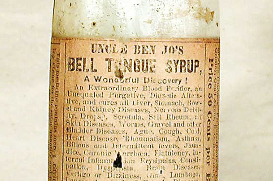 1- شراب لسان الفلفل: أعد هذا الدواء من قبل رجل أصلع يسمى العم بن جو في أمريكا الجنوبية، وقد ضرب السوق عام 1870م، يقال أنه مستمد من نبات لسان الفلفل، يمكن لهذا الشراب علاج أي شيء يؤثر على البشرية في القرن التاسع عشر من أمراض الدماغ، والأورام، والأمراض الجلدية، وعسر الهضم، وحتى الصرع بما لا يزيد عن نصف ملعقة صغيرة تؤخذ ثلاث مرات يوميا.