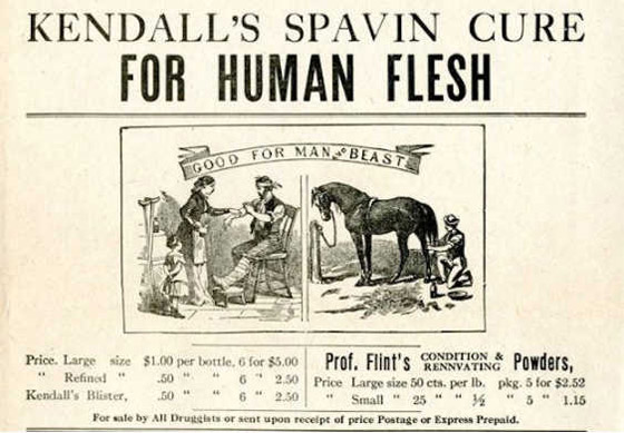 7- علاج الورم العرقوبي: دواء لعلاج تورم مفصل الحصان وكذلك البشر من اختراع كندال عارون عام 1876م، لم يفعل كندال ذلك بشكل جيد من الناحية المادية على المدى الطويل، ولكن ازدهرت شركته في بلدة صغيرة في إنوسبور بولاية فيرمونت، وكانت مؤثرة بما فيه الكفاية لفريق البيسبول "سيمي برو" المحلي.
