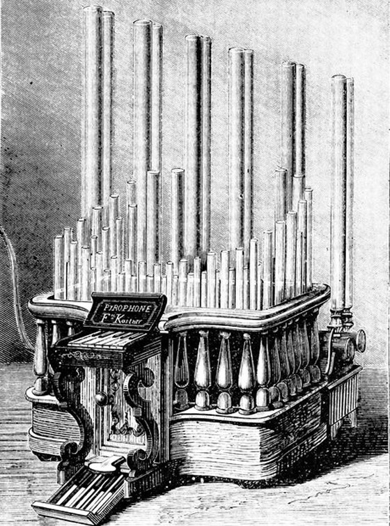 2- آلة البريوفون (Pyrophpne): قد تحتاج لتشغيل هذه الآلة الموسيقية أشعال النار في فوهات الأنابيب لتصدر أصواتاً معينة باستخدام البروبان أو البنزين، كما أن الأصوات الصادرة عن هذه الآلة هي عبارة عن سلسلة من الانفجارات.