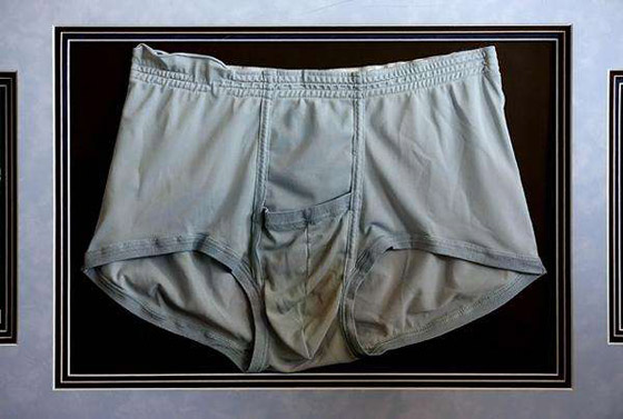 1. السروال الداخلي لإلفيس بريسلي: في المزاد العالمي لعام 2016، عُرض السروال الداخلي المتَّسخ للممثل والمغني الأمريكي إلفيس بريسلي الذي ارتداه تحت إحدى بدلاته البيضاء المشهورة في أثناء تقديمة عرض عام 1977، وبيع بما يقارب 10.000 جنيه إسترليني. يعُد إلفيس بريسلي من أكثر المؤثرين بالقرن العشرين، وأطلق عليه محبوه "ملك الروك آند رول".