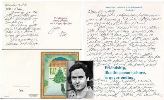 6. بطاقة التهنئة لأكثر القتلة المتسلسلين خطورة: تيد باندي من أكثر القتلة المتسلسلين خطورة في الولايات المتحدة، بعد أن قُبض عليه بعد قتله أكثر من 30 شخصاً، وقبل أيام من إعدامه كتب بطاقة تهنئة برأس السنة، وذكر فيها أنه بريء من جميع الاتهامات الموجهة إليه. وبعد أن رفض الموقع الشهير ebay عرض هذا المنتج للبيع، تهافتت المواقع المنافسة لعرض البطاقة للبيع، لتقوم امرأة فرنسية بشرائها بسعر يقارب 800 دولار.