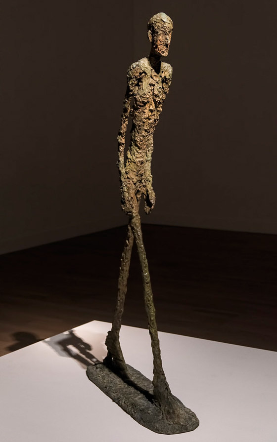 10. تمثال الرجل الماشي: بيع هذا التمثال بما يقارب 104.3 مليون دولار، للفنان الراحل ألبرتو جياكوميتي والذي تجاوز سعره تحفة بيكاسو.