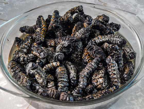 في الواقع تحتوي الديدان الموبانية على ثلاثة أضعاف البروتينات الموجودة في لحوم البقر كما أن استهلاك الديدان لن يضر كثيرًا بالنظام البيئي الطبيعي. ويبدأ حصاد الديدان الموبانية بعد المطر وجدت بأعداد كبيرة في ذلك الوقت. بمجرد أن يجف يمكن تناوله مباشرة أو يمكن طهيه مع زبدة الفول السوداني. ويتم تصدير ديدان الموبان المقلية بشكل كبير إلى أجزاء مختلفة من إفريقيا كل عام، كما يمكن الحصول عليها من المطاعم الأفريقية الشهيرة في باريس.