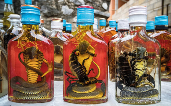 هل تشعر بالملل التام من تناول الأطعمة التقليدية فقط؟ تريد طعامًا بركلة، ثم اختر نبيذ الأفعى وهو عبارة عن أرز أو مشروبات حبوب محضرة بنقع الثعبان. ويتم تحضير نبيذ الثعبان إلى حد كبير في فيتنام ودول جنوب شرق آسيا الأخرى. في بعض الحالات يشمل الفيتناميون كلاً من العقارب والثعابين في هذا النوع من النبيذ الغريب تمامًا.