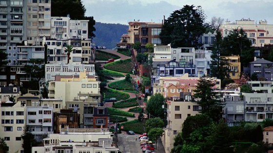 3. شارع لومبارد في الولايات المتحدة: تشتهر مدينة سان فرانسيسكو بتلالها العديدة، ما جعل بعض شوارعها متعرجة. ويشتهر شارع لومبارد في سان فرانسيسكو بأنه أكثر الشوارع تعرجاً في العالم وفيه العديد من المنحنيات المزينة بالأشجار والزهور.