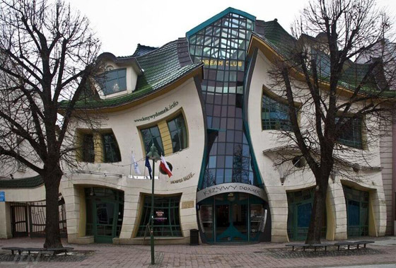 6. البيت المعوّج - سوبوت، بولندا: هو مبنى على شكل غير منتظم في سوبوت، بولندا. Rezydent في عام 2004. ومن حوالي 4000 متر مربع، وهو جزء من مركز التسوق فندق Krzywy Domek.
