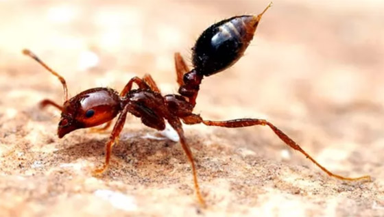 10- النملة الرصاصة: النملة الرصاصة تعتبر من اكبر أنواع النمل في العالم، وتسمى أيضا بالنملة الطلقة، وهى تتواجد في الغالب في الغابات المطيرة في نيكاراجوا وباراجواي، والنملة الرصاصة من اخطر الحشرات وهى تسمى بالرصاصة لان لدغتها قوية ومؤلمة مثل ألم الرصاصة. وبعد اللدغة تشعر وكأنك قد قذفت برصاصة، ولدغة هذه النملة اكثر ألما من لدغة النحل بحوالي 30 مرة، والنملة الرصاصة حجمها بوصة واحدة، ومستعمرات هذا النوع من النمل تحتوي على مئات من الأعضاء، وعادة ما يعيشون في اعشاش في قاعدة الأشجار الكبيرة، والنملة الرصاصة أيضا تطلق روائح كريهة مرة واحدة اذا وجدت أي مفترس، واذا كانت هذه الخدعة لا تبعد الحيوانات المفترسة عنها، فإنها ستهاجم أيضا بلدغاتها القوية.