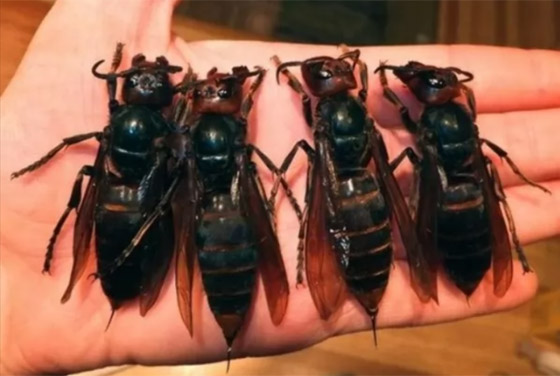 5- الدبابير اليابانية العملاقة: الدبابير اليابانية العملاقة هي اكبر أنواع الدبابير في العالم، فهي تنمو لتصل الى حجم 2 بوصة، وهى من اخطر الحشرات القاتلة، حيث يتم تسجيل كل عام ما يصل الى 40 حالة وفاة بسبب لدغة هذه الحشرات، وسم الدبور الياباني من شأنه ان يسبب رد فعل تحسسي داخل الانسجة في وقت قصير، ويمكن ان يؤدي الوخز المتكرر أيضا الى الوفاة، والدبابير اليابانية تعتبر حشرات عدوانية جدا، حيث ان كل مستعمرة تحتوي على ما يصل الى 700 عضوا، وهى تتغذى على يرقات نحل العسل، ولديها القدرة على الانتهاء من ما يصل الى 40 من نحل العسل في دقيقة واحدة.