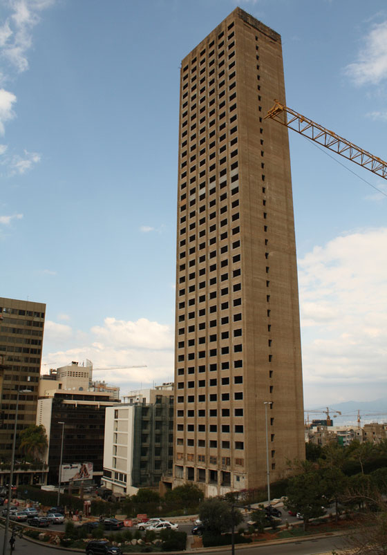 8- برج المر في بيروت لبنان: بني المبنى في الأساس كمكاتب، ومركز تسوق، وتوقف البناء عام 1975 بسبب الحرب الأهلية اللبنانية. احتلت الميليشيات المسلحة الطوابق العليا من المبنى، واستخدم لإطلاق النيران، وما زال المبنى واقفاً على الرغم من الأضرار التي لحقت به.