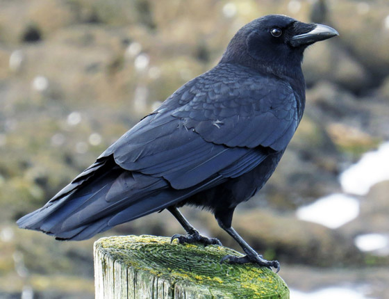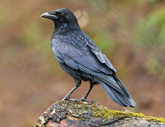8. الغراب الأزرق: يعيش هذا النوع من الغربان في مصر وفلسطين وسوريا ويبلغ طوله نحو 43 سم ولونه أسود يميل إلى الرمادي.