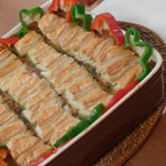 8. رتبي المستطيلات متلاصقة على الدجاج ليتغطى.