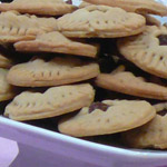 10. باستعمال قطاعة صغيرة مقاس 1بوصة، ذات اشكال زخرفية، اقطعي في وسط نصف كمية دوائر العجينة. ( اجمعي العجينة الزائدة واعيدي تشكليها دوائر صحيصة ومفرغة).