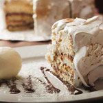 - توضع مقادير الطبقة الثانية على نار هادئة الى أن تذوب ثم ترفع عن النار وننتظر الى أن تبرد قليلا ونخرج الصحن من الفريزر ونسكبها فوقه و يعاد مرة أحرى للفريزر الى أن يجمد ثم يزين بالفليك المبشور وكور الكاكاو.