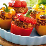 6 من الفلفل الاحمر تُقْطَع رُؤوسها وتـُزال أجوافها وبذورها.
