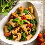 2- تضاف أوراق السبانخ الى الدجاج وتقلب حتى يجف الماء تماما ثم تضاف المعكرونة وتقلب وتترك على النار لمدة 5 دقائق ثم توضع في طبق التقديم ويرش عليها الجبن الشيدر المبشورة وتقدم ساخنة.