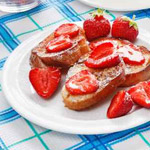 سخّني 100 غرام من فاكهة الصيف المجمّدة في مقلاة، ثم انثري عليها السكر لإضفاء النكهة. في هذه الأثناء، قومي بخفق بيضة مع ملعقتين صغيرتين من كريما الطهو. سخّني قليلاً من الزبدة في مقلاة، وقبل قلي شرائح خبز "التوست"، قومي بغمسها في خليط البيض والكريما، لتستمر عملية القلي لدقائق عدة، قلّبي الشرائح خلالها حتى تصبح بنية اللون. زيّني الوجه بالفاكهة وعروق النعناع الصغيرة. (هذه المقادير تكفي لشخصين)