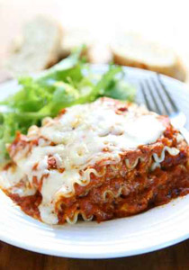 نضع الثوم المفروم مع قليل من زيت الزيتون والمشروم على النار ويقلب لمدة 10 دقائق، نحضر صينية ونضع فيها شرائح الكوسة جنبا إلى جنب لتغطية قاع الصينية ثم يليها مكعبات الباذنجان ثم الصلصة ثم الجبنة الريكوتا والمشروم والجبن الموتزاريلا ثم باقي الصلصة والباذنجان ثم باقي الكوسة ويغطى الوجه بخليط من الجبن الريكوتا والموتزاريلا، ندخل الصينية في الفرن لمدة 50 دقيقة على درجة حرارة 200 حتى يحمر وجه الصينية وتقدم ساخنة.