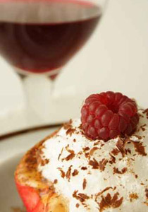 وتضاف رغوة التوت للبارفيه، ويقدم الخوخ بجانبها.