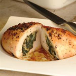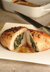 6. نشكل جيب عميقة في قطع الصدر ونحشوها بخليط السبانخ