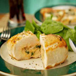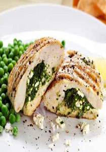 - أحضري صحن بايركس، قومي بعمل فراغ بين جلد الصدور ولحم الدجاج بواسطة ملعقة كبيرة، ثم ضعي كمية مناسبة من خليط الجبن بينهما وأحكمي غلقها بواسطة عصا خشبية رفيعة (خلة أسنان)، حتى لا يخرج الحشو (لا تملئي صدور الدجاج بكمية كبيرة من الحشو).