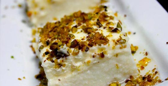- ثم تضاف القشطة على الوجة ويزين بالفستق الحلبي المطحون.