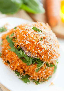-اغسلي حبات الجزر بالماء وجففيها جيدا بورق المطبخ، وبعدها قشري الجزر وبشريه بالمبشرة اليدوية.