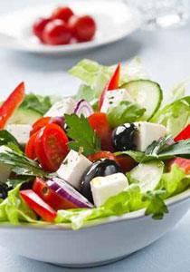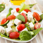 - نقطع الجبنة ونضيفها إلى السلطة ونحرك.