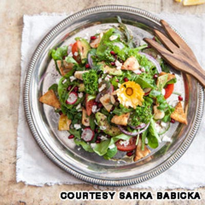8.الفتوش: سلطة منعشة تعد من أعظم اسهامات الشرق الأوسط في الثقافة العالمية، وهي عبارة عن خس طازج مع مربعات الخبز المقلية ومكعبات الطمام والخيار والبصل والثوم والليمون وزيت الزيتون والنعناع.