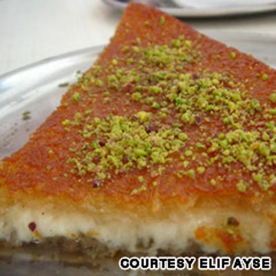 19.الكنافة: شائعة في فلسطين وسوريا ولبنان، وهي عبارة عن طبق جبنة لذيذة محلاة ويلون باللون الاحمر الذي يؤتى به من زهر البرتقال أو ماء الورد.