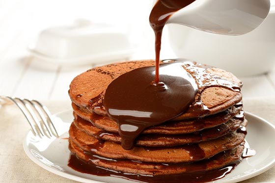 - تقدم البان كيك مع صلصة الشوكولاتة.