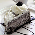 -تقطع الـ8 قطع من الأوريو المتبقية بالسكين قطع متوسطة وتخلط بالنصف المتبقي من كريمة الخفق، وتصب فوق خليط البودينج والكريمة.