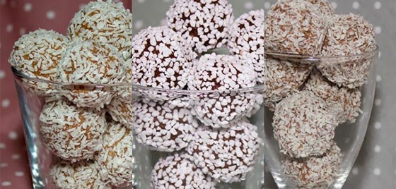 نضعها في جوز الهند والمكسرات المفرومة أو بذور السمسم.