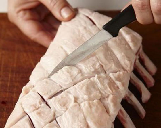 2- بواسطة سكين حادّ، حززي اللحمة .