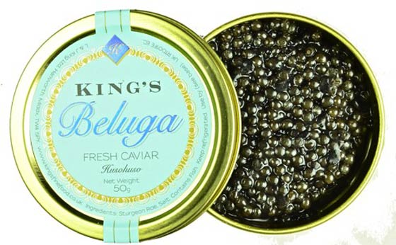"كافيار الملوك": كثير من الناس يعتقدون أن الكافيار هو أغلى طبق في العالم ولكن هنا يأتى الكافيار في المرتبة السابعة، ويعتبر الكافيار غذاء الملوك والأغنياء وأجوده كافيار بلوجا وهو بيض سمكة الحفش ينتج في إيران وكازاخستان ويعتبر من أكثر الأطعمة غلاء في العالم، فالكيلوجرام الواحد العادي منه قد يصل سعره إلى 5000 دولار ويبدأ من 2000 دولار وأفضل أنواع الكافيار وأغلاها سعراً ذلك المستخرج من السمك الذي تجاوز مرحلة البلوغ الجنسي، وهي 12 عاماً.
